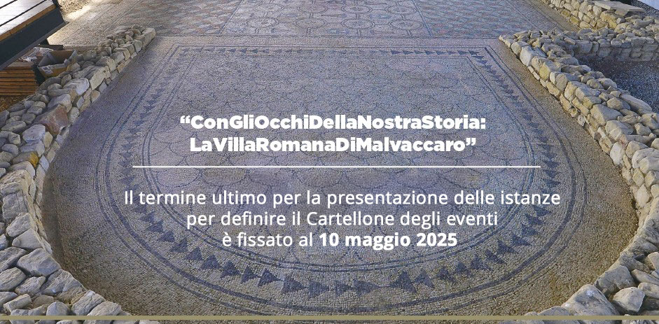 Si avvisano tutti gli Enti del Terzo Settore, gli operatori culturali e altri soggetti pubblici o privati, che il termine per la presentazione delle domande è rinviato alle ore 12 del 10 maggio 2025. Possono essere candidate proposte finalizzate alla valorizzazione del patrimonio storico locale, con palcoscenico naturale la Villa Romana di Malvaccaro, nell’ambito del Cartellone culturale cittadino denominato “ConGliOcchiDellaNostraStoria: aVillaRomanaDiMalvaccaro”.