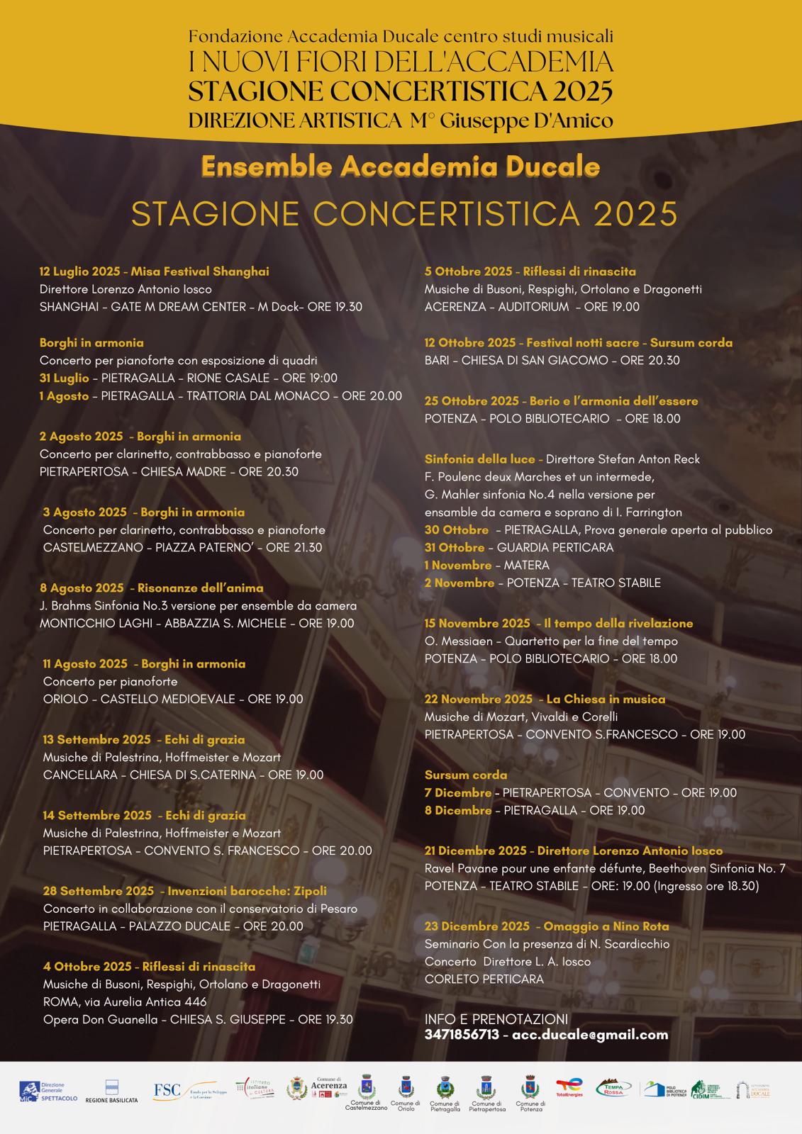 2 Settembre 2025 Fondazione Accademia Ducale “I nuovi fiori dell’Accademia” Stagione concertistica 2025Da luglio a dicembre 2025 Comun della Basilicata. Manifesto Accademia ducaleDownload