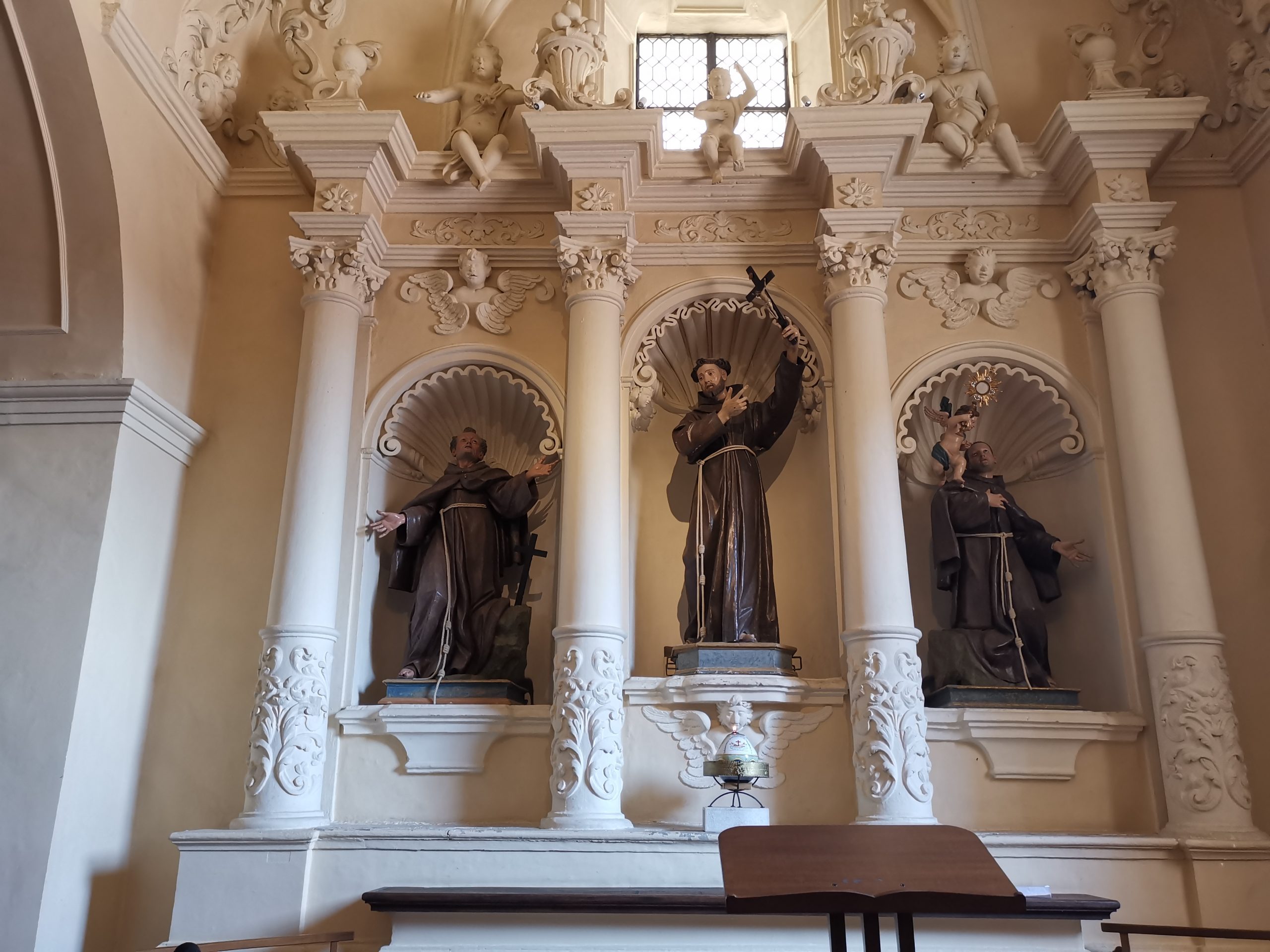 Nel primo altare della navata piccola sono collocate statue devozioni dei Santi: