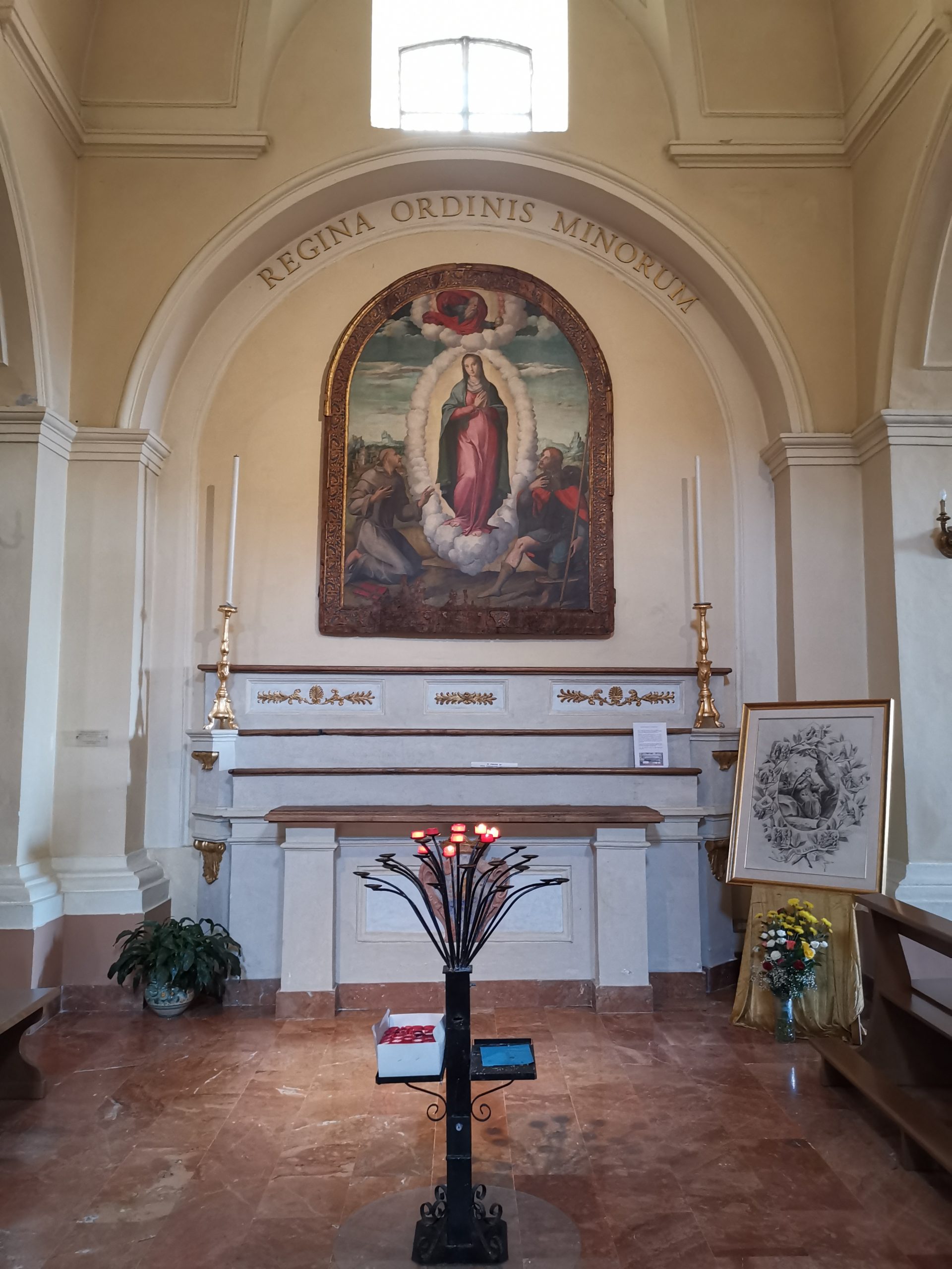 L’Immacolata tra S. Francesco e S. Rocco è una tavola di scuola raffaellesca, di equilibrio cromatico e compositivo, della seconda metà del sec. XVI. L’impianto compositivo, pur con calibrato equilibrio cromatico dell’insieme, ha un’evidente impronta francescana e caratteri di una religiosità popolare semplice e chiara.