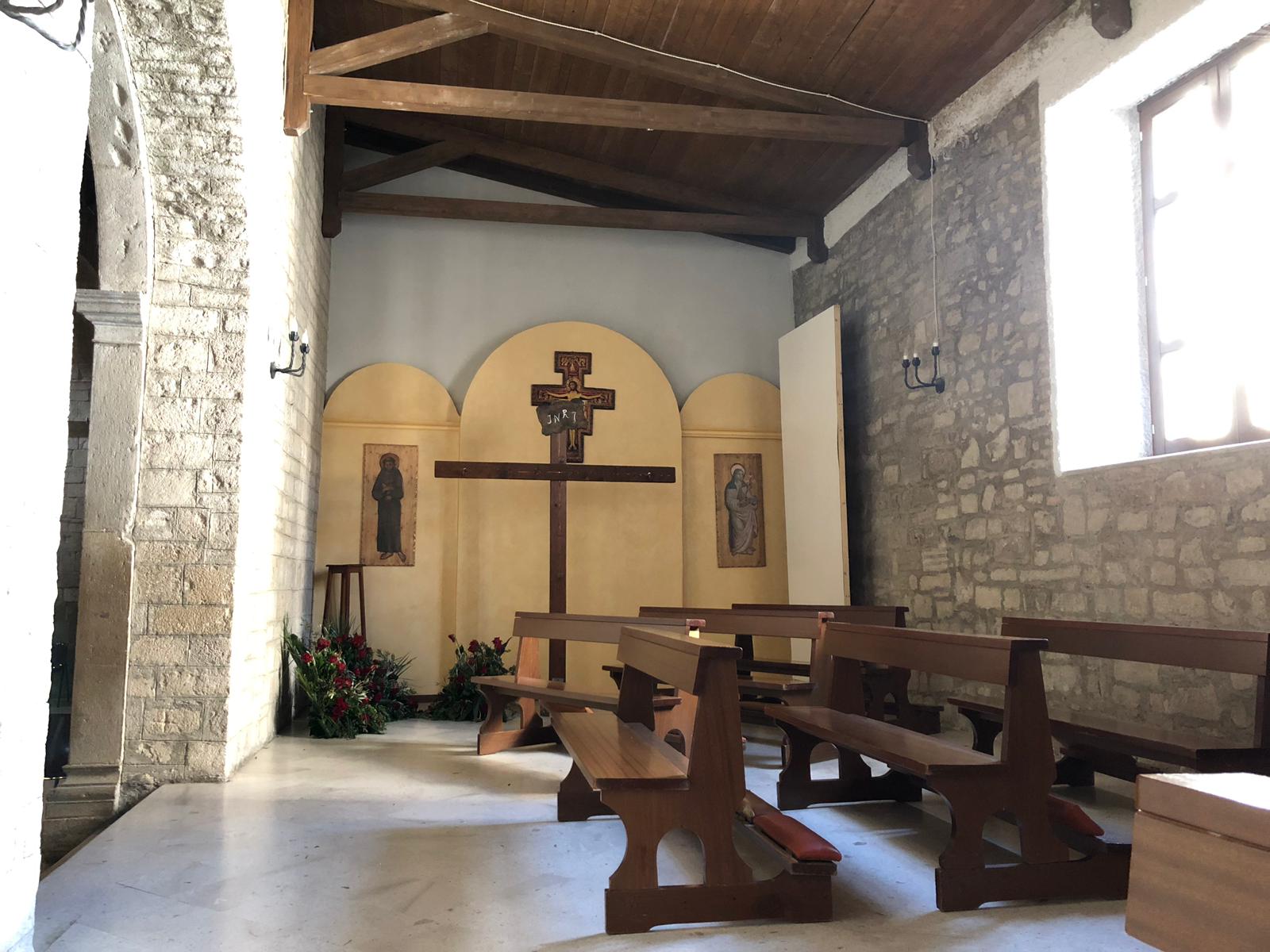 Sull’altare maggiore domina il crocifisso ligneo policromo opera di un ignoto artista meridionale. La navata centrale, sovrastata da un soffitto ligneo illuminato da tre monofore, presenta diverse opere d’arte.