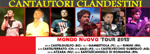 Il nome nasce dal nostro incontro nel 2005. Ci siamo ritrovati dopo varie esperienze “clandestine” sia musicali che sentimentali… Cristian Mini, leader e vocalist di questo gruppo di musicisti fantastici, dopo aver interpretato per 3 anni il ruolo di Clopin nella meravigliosa opera popolare “Notre Dame de Paris” di Riccardo Cocciante, insieme ad altri 5 validi musicisti, hanno dato vita a questo progetto. La musica che suoniamo vive in uno stato perenne di clandestinità con i suoi messaggi, i suoi racconti, che diventano inevitabilmente le nostre storie… del resto siamo tutti un po’ clandestini. Il nostro repertorio si avvale di canzoni che spaziano da De Andrè a Guccini, da Fossati a Battiato, e tanto altro, prendendole dal loro contesto storico per giocare e farle nostre. Poi c’è anche dell’altro: le nostre canzoni inedite dal CD “Mondo Nuovo”