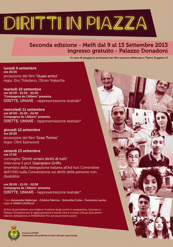 Venerdì 13 settembre – ore 17,00, Sala Consiliare Comune di Melfi: convegno “Diritti umani diritti di tutti” con il prof. Giampiero Griffo (membro della delegazione italiana all’Ad hoc Committee dell’ONU sulla Convenzione sui diritti delle persone con disabilità)