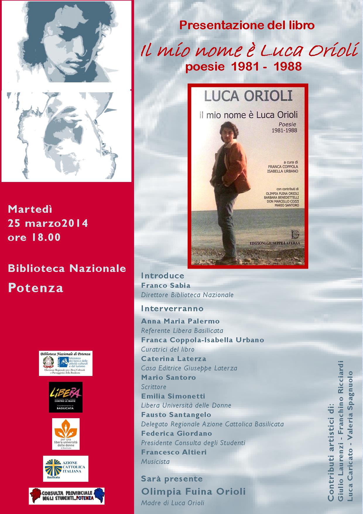 25 anni fa moriva a Policoro, all’età di 21 anni, in circostanze mai chiarite, Luca Orioli. A distanza di tanti anni, per volontà della madre Olimpia, curato da Franca Coppola ed Isabella Urbano ed edito da Laterza, esce il bellissimo libro con le poesie scritte da Luca, dal forte impatto emotivo.