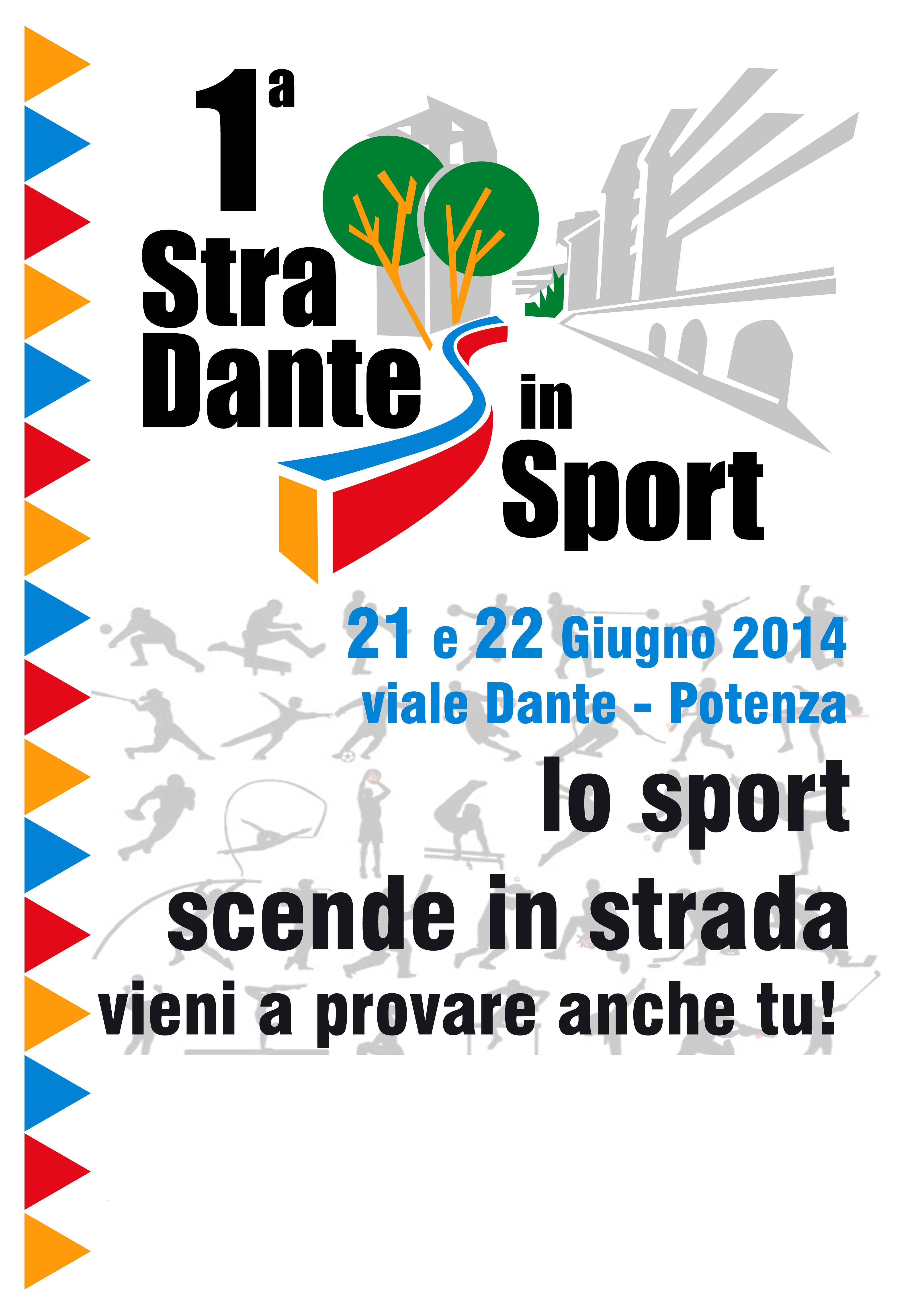20 Giugno 2014 1° Stra Dante in sport Lo sport scende in piazza. Vieni a provare anche tu. 21 e 22 giugno 2014 Viale Dante – Potenza locandina sportissimo no logo.JPG