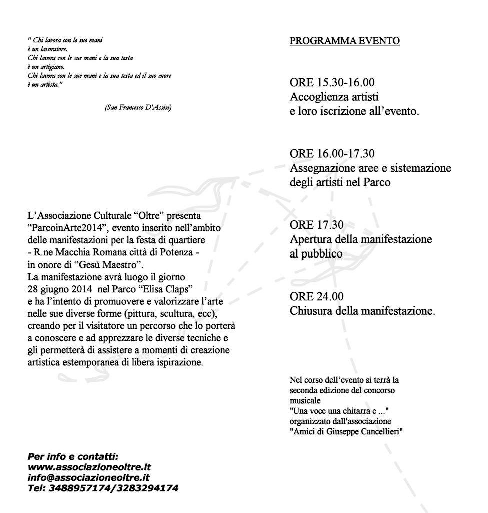 “ParcoinArte 2014” con la partecipazione di artisti contemporanei della Regione Basilicata e delle regioni limitrofe.