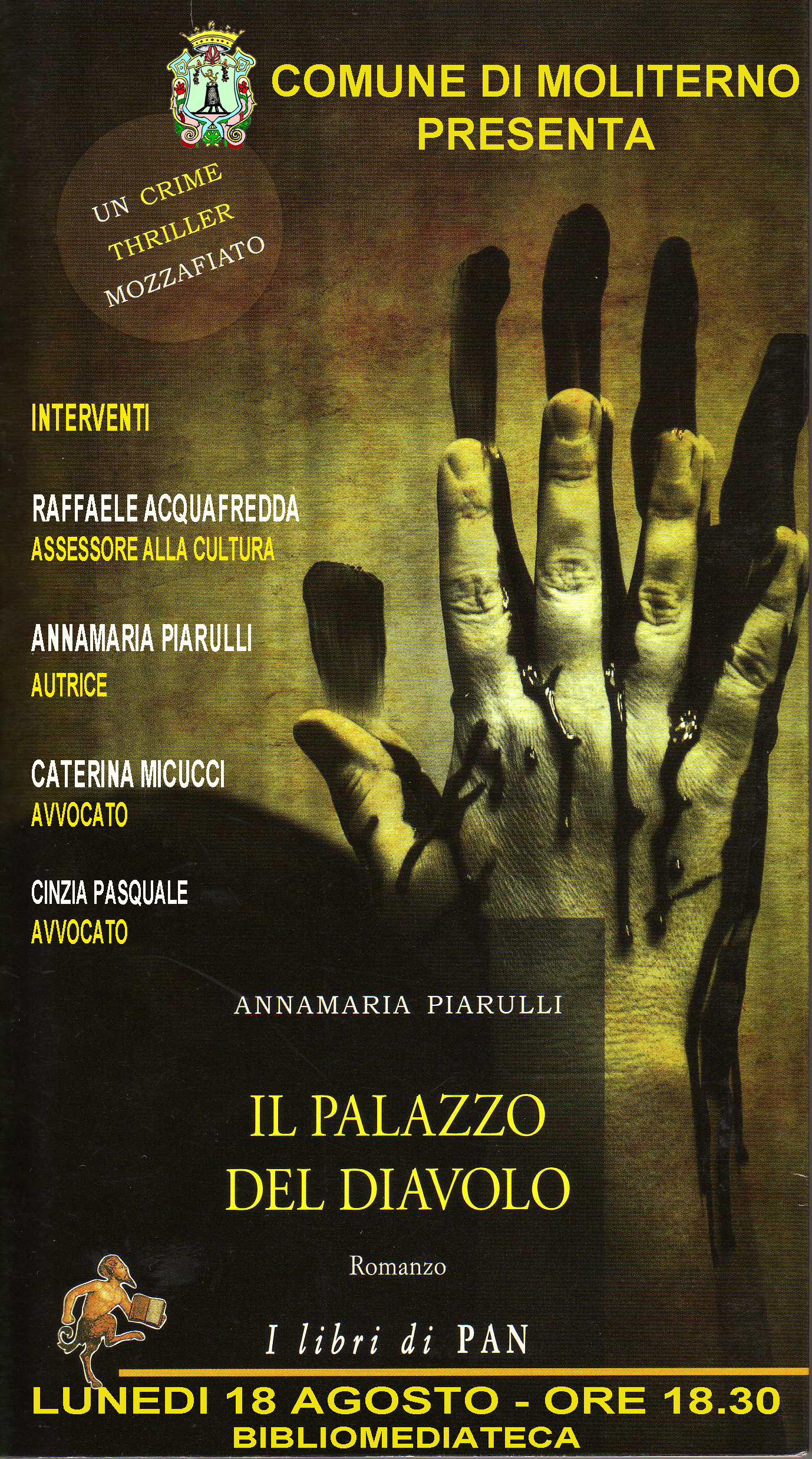 14 Agosto 2014 Presentazione libro “Il palazzo del diavolo” di Annamaria Piarulli Lunedì 18 agosto, ore 18,30 Bibliomediateca “G. Racioppi” – Montemurro (PZ) ILPALAZZODELDIAVOLO DEF.jpg