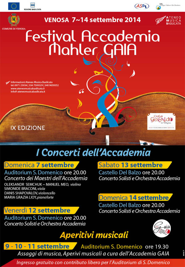 Il festival si svolgerà a Venosa dal 7 al 14 settembre 2014. L’iniziativa è organizzata dal Comune di Venosa in collaborazione con Ateneo Musica Basilicata.