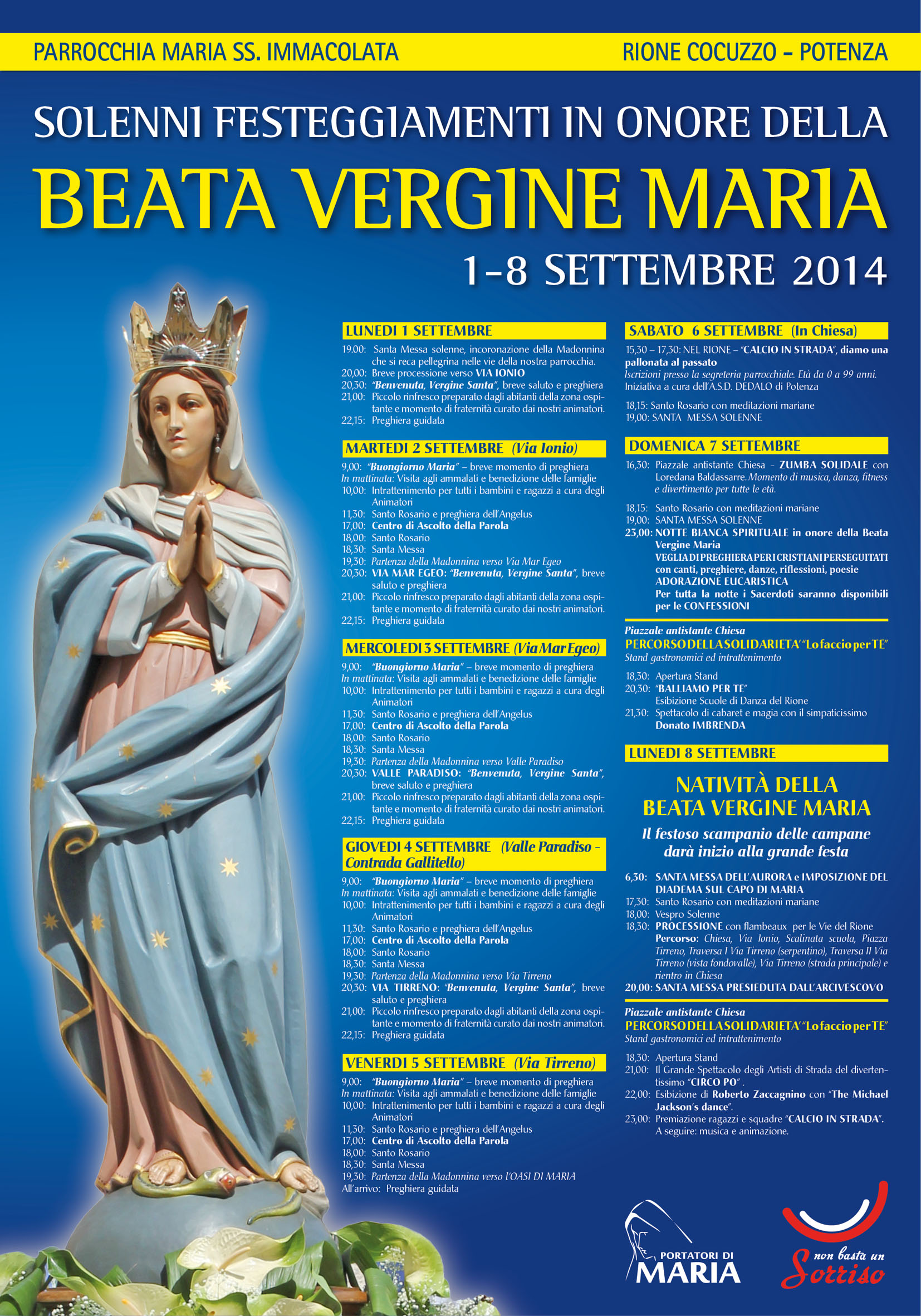 5 Settembre 2014 Parrocchia SS. Maria Immacolata Festeggiamenti in onore della Beata Vergine Maria Rione Cocuzzo – Potenza 1/8 settembre 2014 cocuzzo.jpg
